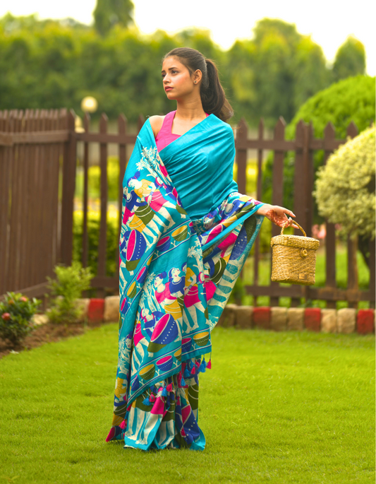 Turquoise Blue Digital Printed Saree
