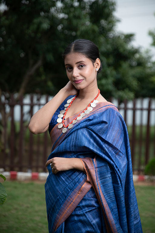 Sold outBlue tussar by Ghicha Silk Saree