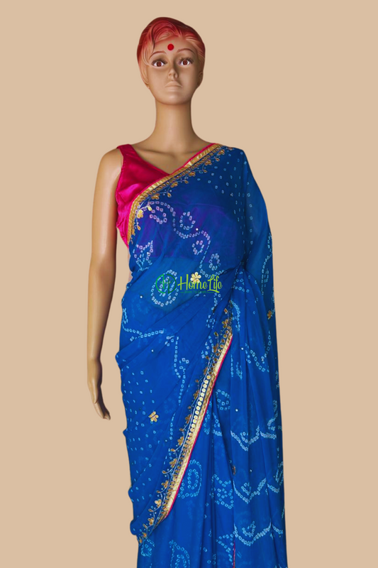 Assam Handloom Royal Blue Saree with Golden zari motif