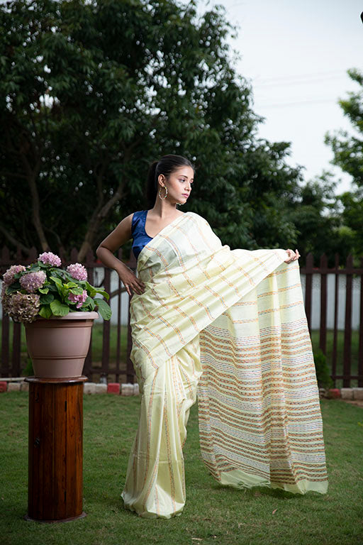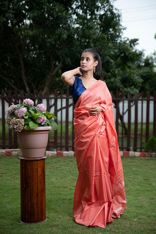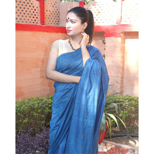 Assam Handloom Royal Blue Saree with Golden zari motif