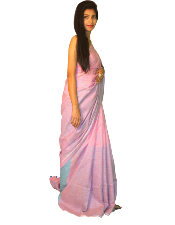 Baby Pink colour Masrize cotton Katha Saree. woven design saree with tassel work done. Saree comes with an unstiched blouse piece. The blouse worn by the model might be for modelling purpose only.