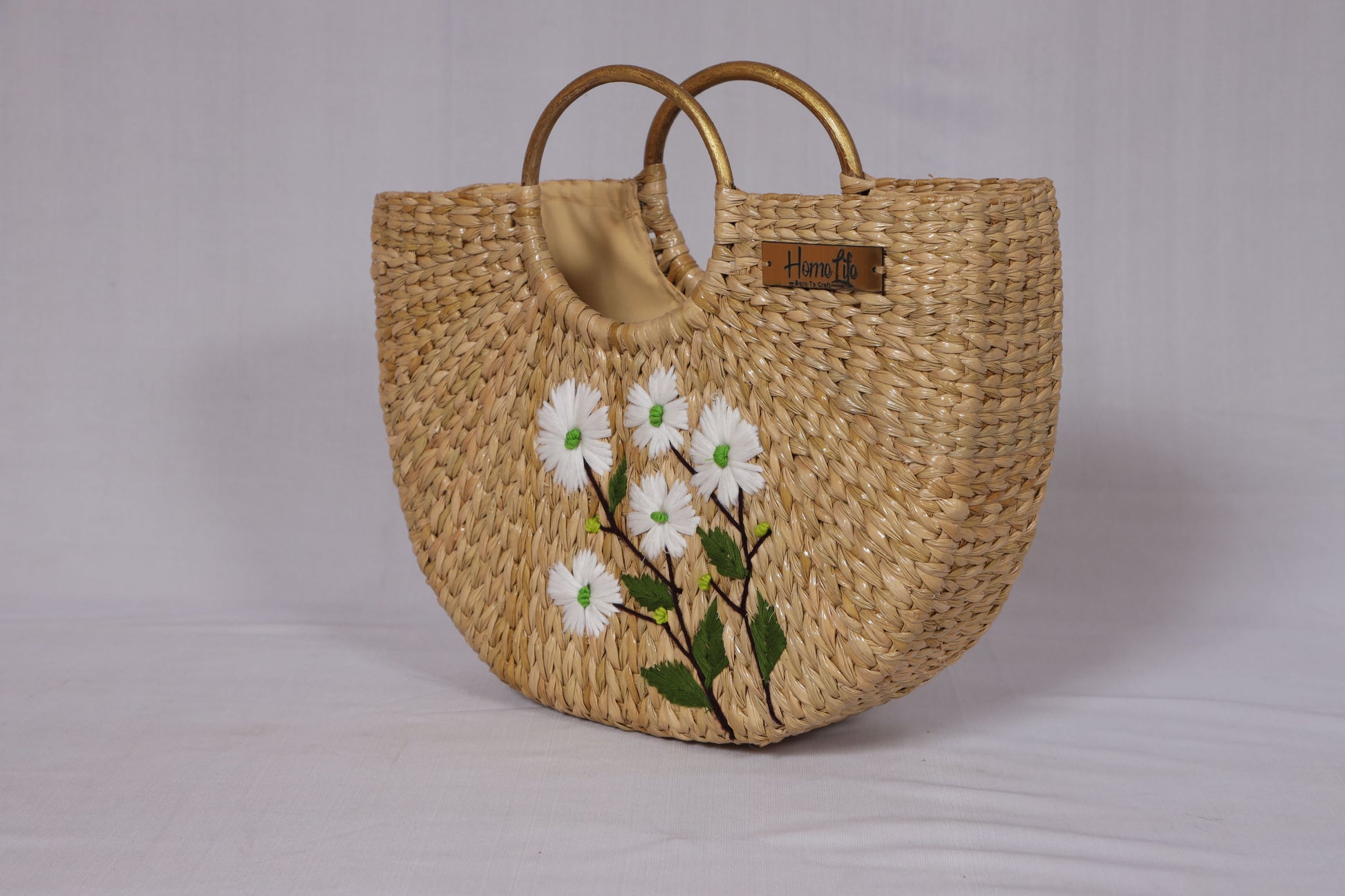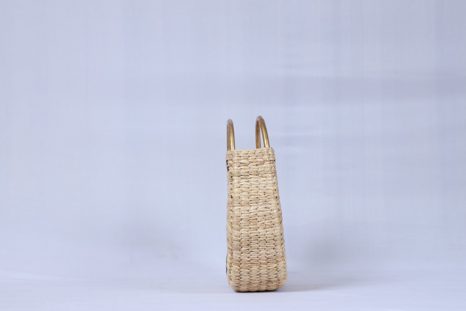 Kauna U Shaped bag is made of Kauna Grass. Kauna Grass is a water reed, which is native to North Eastern India It is harvested, dried & then weaved into bags, baskets, mats etc. It has a waxy outer coating and a thick pith, which makes our products strong, sturdy, light weight, durable and stylish.